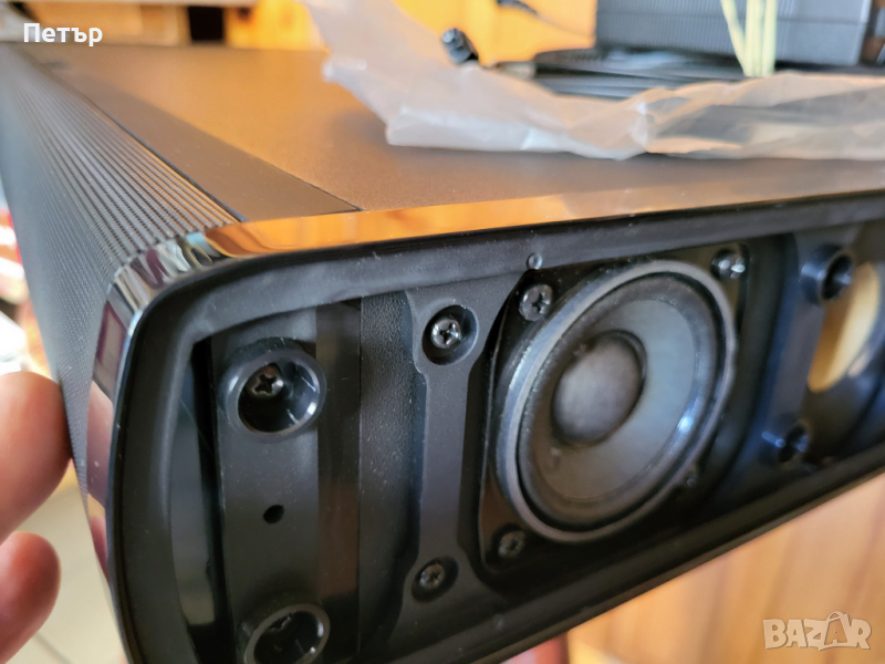 Срахотен дълбок БАС и много СИЛЕН ясен звук/ много отчетливи ефекти при филми.Пробвал съм го 10 дни включен работи перфектно