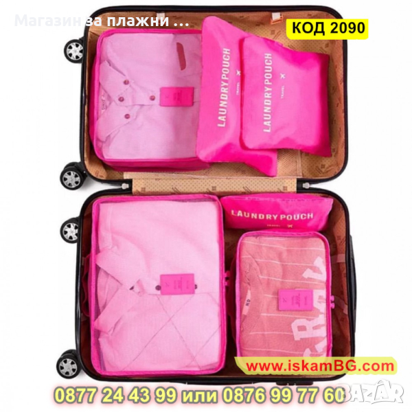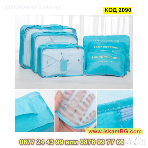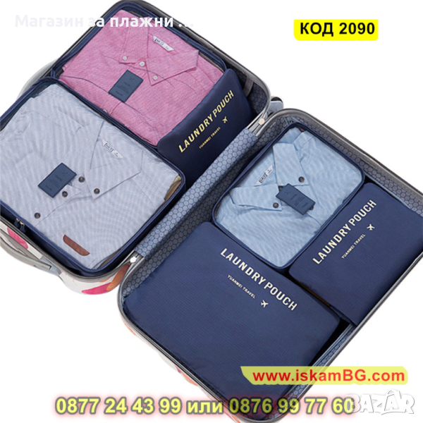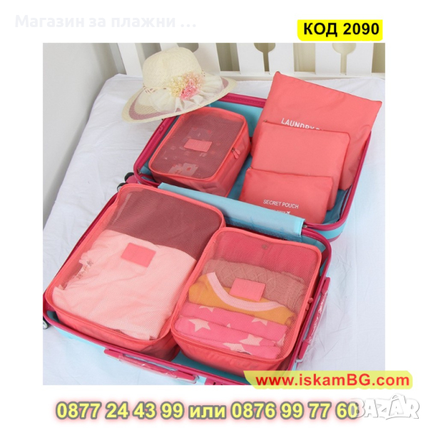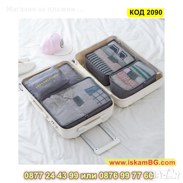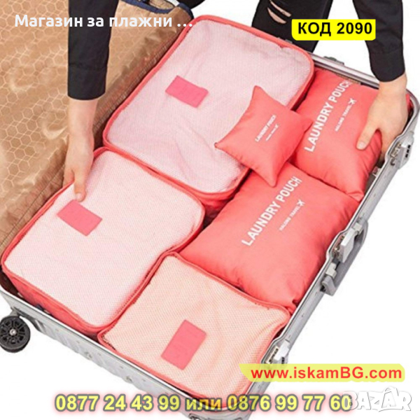 Органайзери за пътуване в комплект от 6 части с прозрачни капаци - КОД 2090