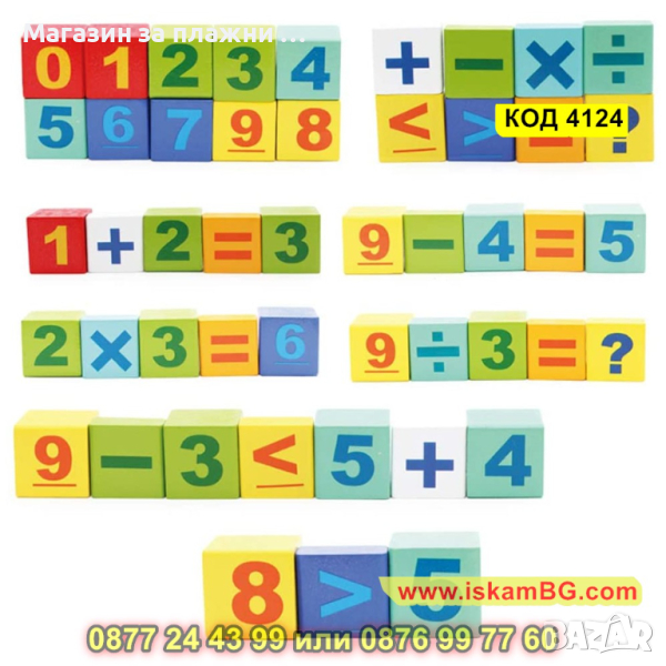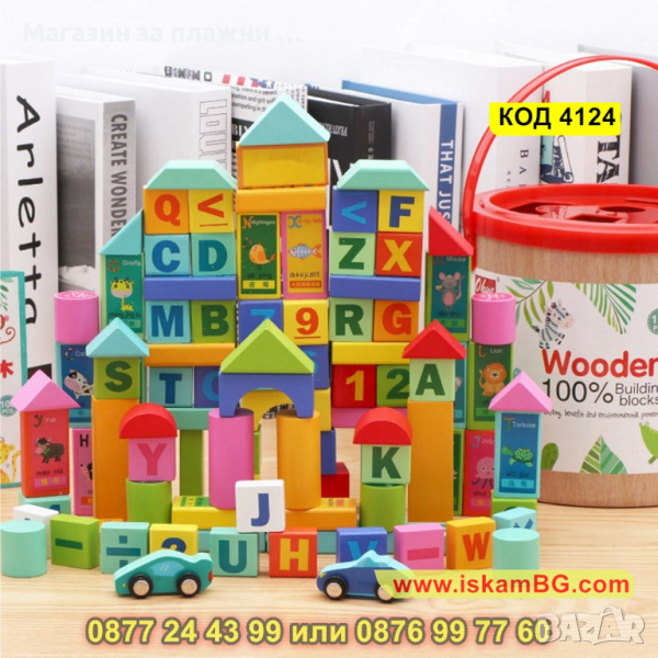 50 броя цветни дървени кубчета