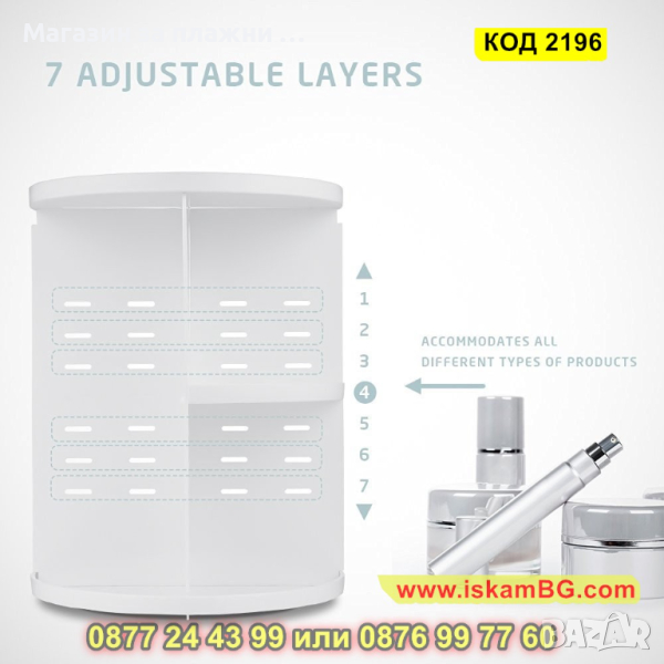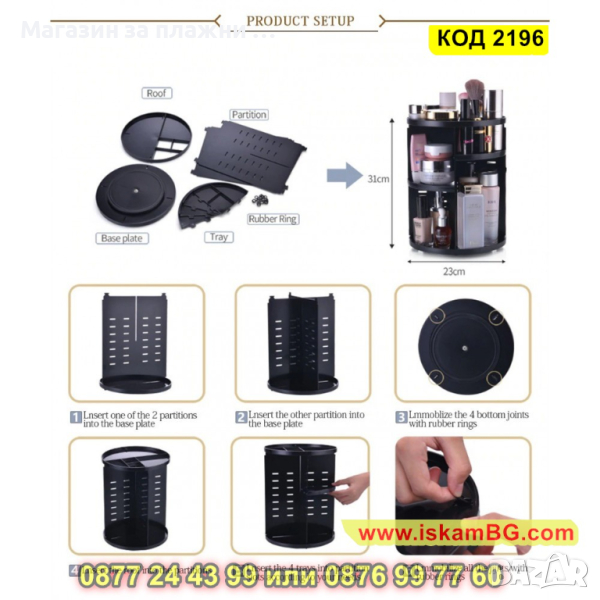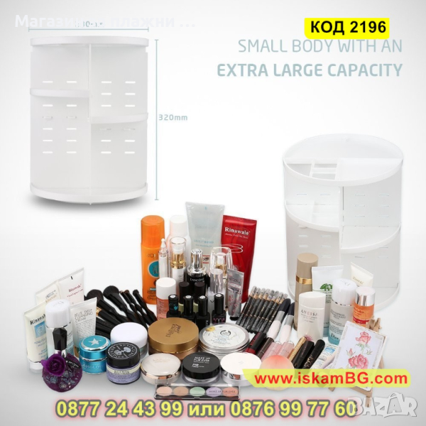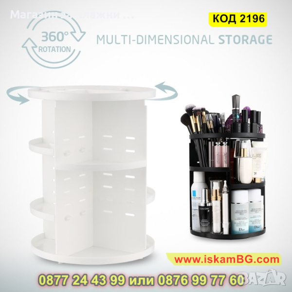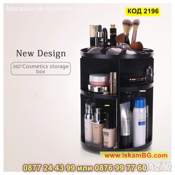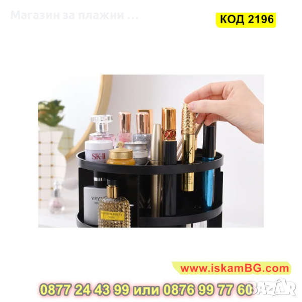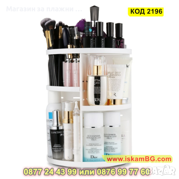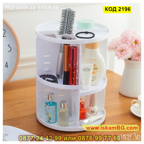 Въртящия се на 360 градуса органайзер е чудесно допълнение към Вашата домашна гримьорна като едновременно прилежно подрежда използваните от Вас продукти и спестява място.