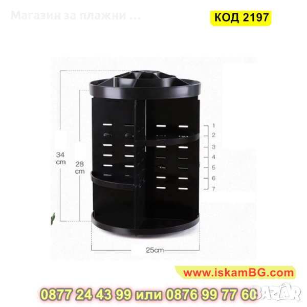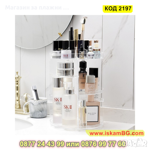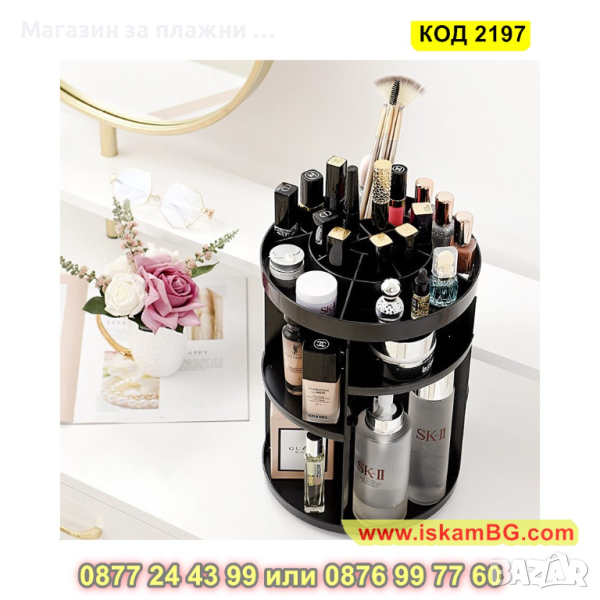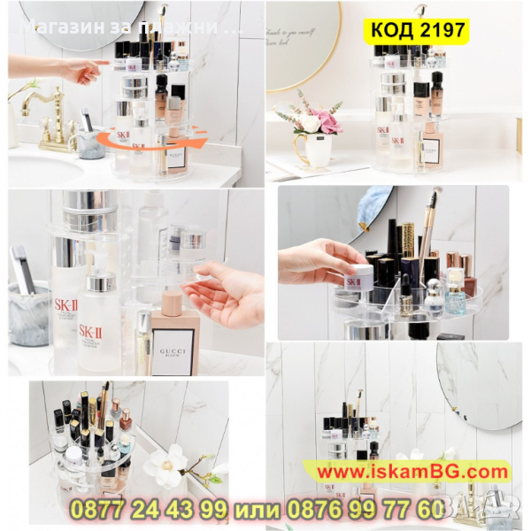 Не пропускайте да се възползвате от предимствата и ползите на този въртящ се органайзер. Поставете вашата любима козметика на пиедестал и се насладете на уникалното удобство и красота, които той предлага.