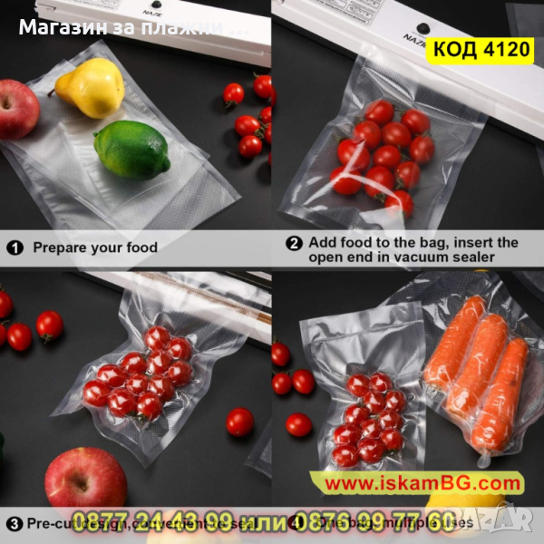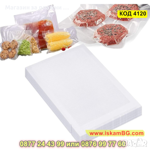 50 броя с размер 17x25cm - Пликове Торбички - гофрирани за вакуумиране - КОД 4120