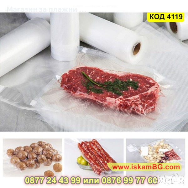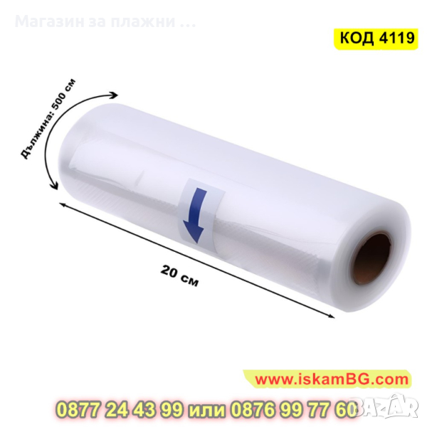 Опаковка за вакуумни машини (ролка 20х500 см) представлява торба, предназначена за вакуумно опаковане на продукти.