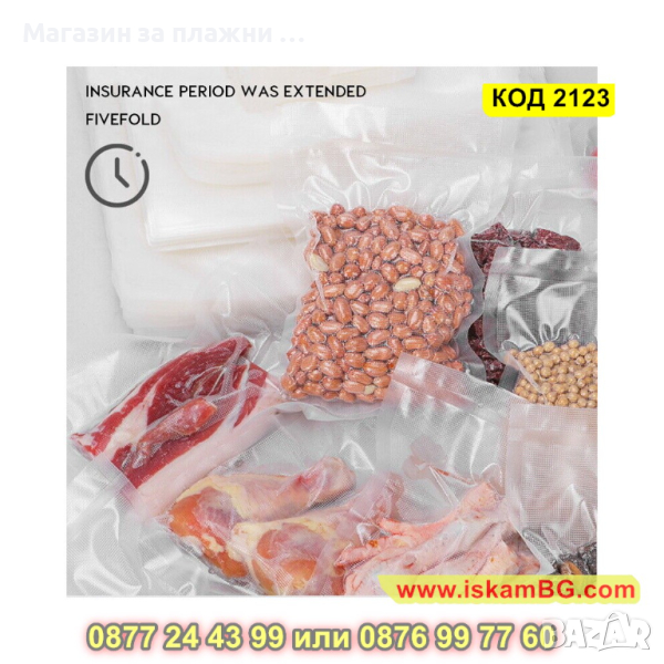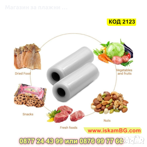 Опаковка за вакуумни машини (ролка 25х500 см) представлява торба, предназначена за вакуумно опаковане на продукти.