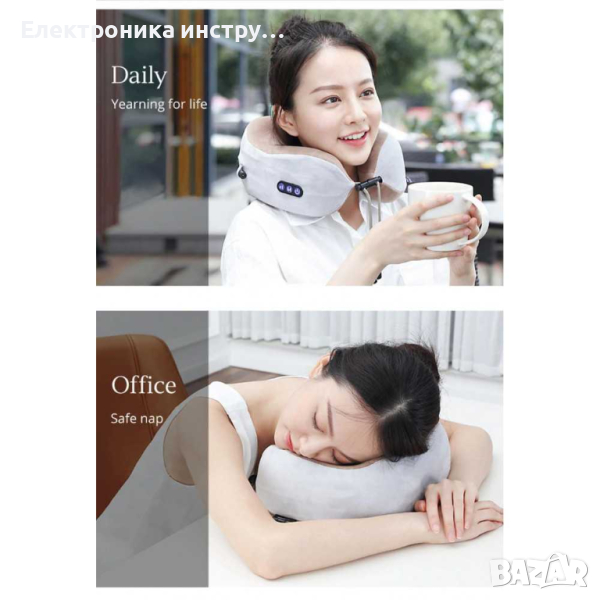 U-образна електрическа масажна възглавница, цервикална опора, магнитотерапия → Обява 44699086