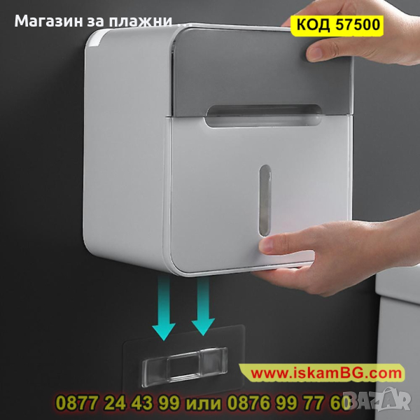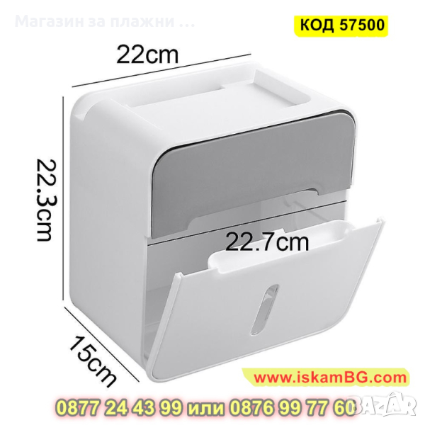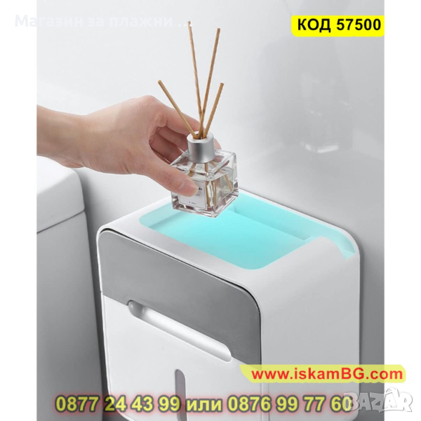 Водоустойчива поставка за тоалетна хартия с чекмедже - лепяща - КОД 57500