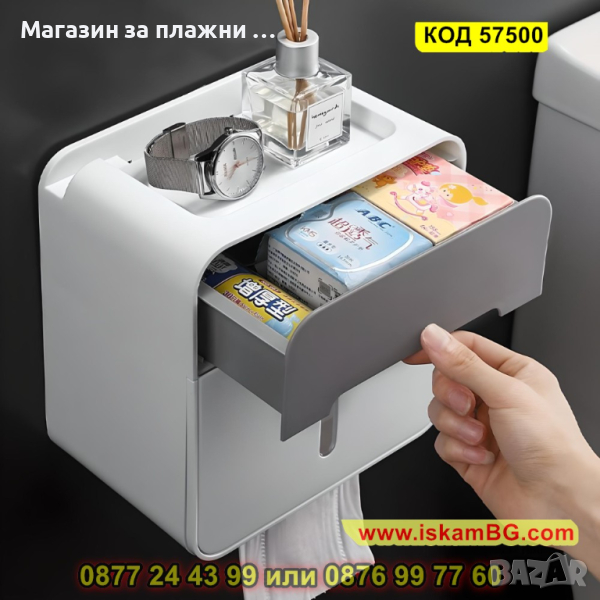 Красива и практична водоустойчива поставка за тоалетна хартия с чекмедже, която ще украси Вашето помещение.