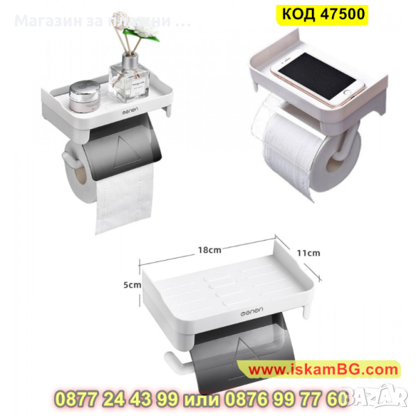 Поставка за тоалетна хартия с рафт за телефон - КОД 47500