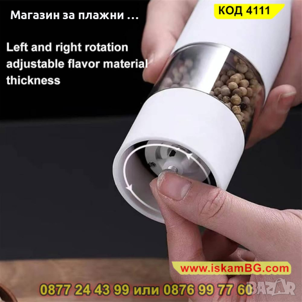 Електрическата мелничка за подправки е идеалният малък помощник за овкусяване както в кухнята, така и на масата. Благодарение на прозрачното акрилно стъкло ще разберете навреме кога да напълните подправките. Може би най-очевидната характеристика е възможността за регулиране на степента на смилане.