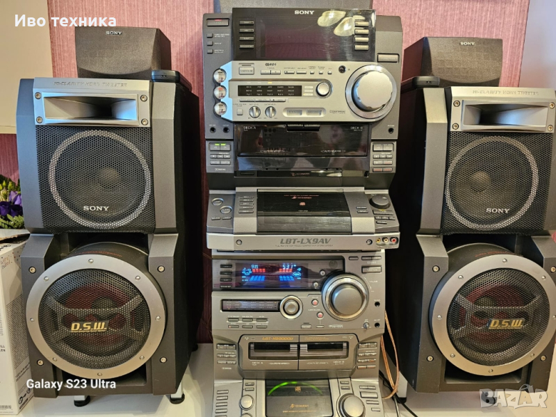 SONY LBT-LX9AV=1300лв. SONY LBT-XB800AV=800лв. във много и много добро техническо и визуално състояние като нови всичко работи перфектно касетки CD PLAYER и всички функции със дистанционни управления.за повече информация на тел 00359 897 57 51 57 0049 157 79 12 78 28 иво. истината е че другите уредби аз съм и слушал нямат нищо общо със тези вие може би по добре знаете