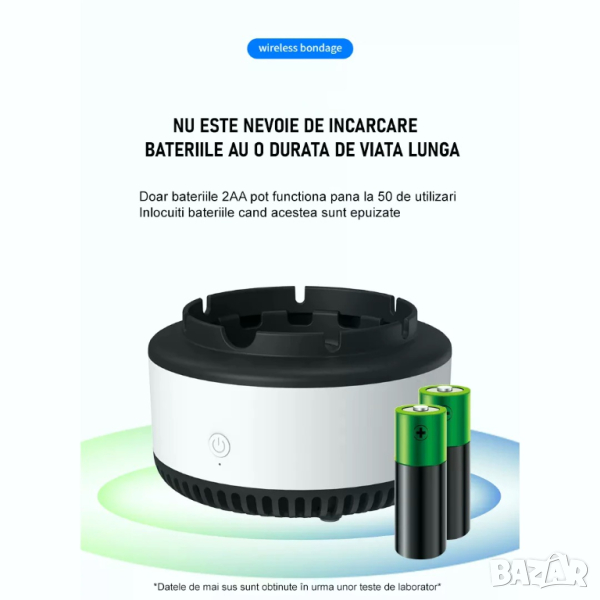 Пепелника работи с 2бр. батерии "АА".(не са включени в комплекта)