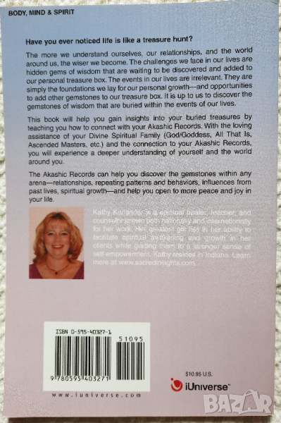 the foundations we lay for our personal growth-and opportunities to add other gemstones to our treasure box. It is up to us to discover the gemstones of wisdom that are buried within the events of our lives. This book will help you gain insights into your buried treasures by teaching how to connect with your Akashic Records. With the loving assistance of your Divine Spiritual Family (God/Goddess, All That Is, Ascended Masters, etc.) and the connection to your Akashic Records, you will experience a deeper understanding of yourself and the world around you. The Akashic Records can help you find the gemstones within any arena-relationships, repeating patterns and behaviors, influences from past lives, spiritual growth-and help you open to more peace and joy in your life.