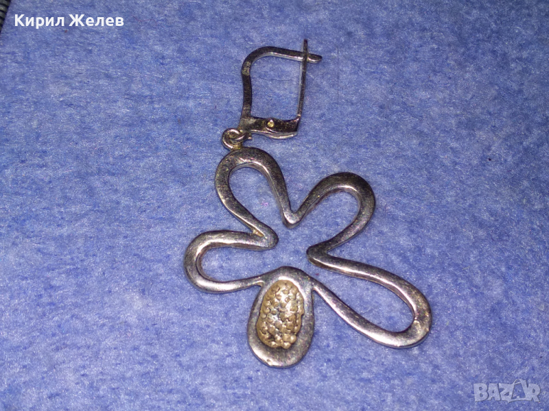 ШАРМАНТНА СРЕБЪРНА ВИНТИДЖ АРТ ОБЕЦА СРЕБРО 925 с БЯЛА ПОЗЛАТА и АНГЛИЙСКО ЗАКОПЧАВАНЕ 43226