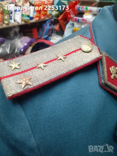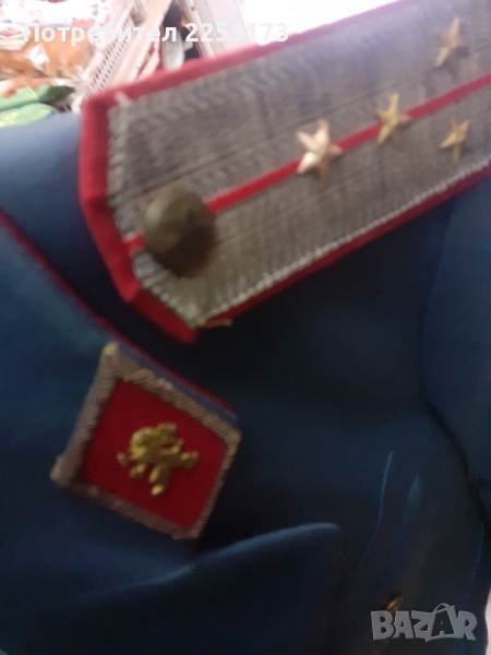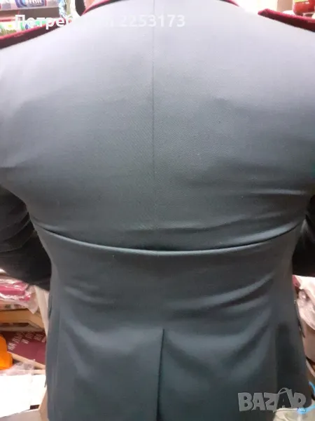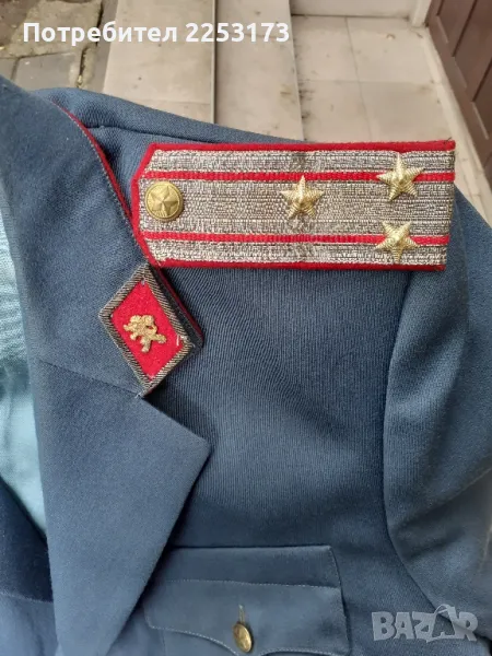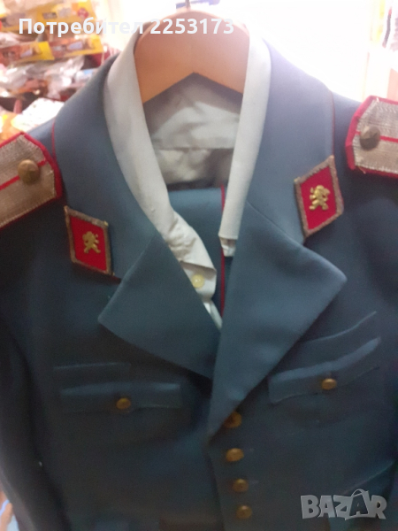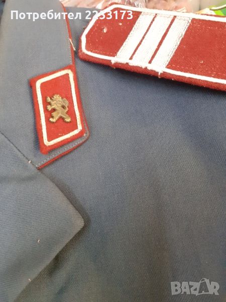 Ползвана запазена,капитан,рам.50см,ръкав горе61см,вис.83см.Отговаря сега на Л.маг.долу.Сержантската има етикети,етикети ИО и номерация.170/100/88.Шапка,панталон,куртка,черни обувки и риза.z150.Разполагам със сержантска, милиция,сако,панталон и шапка.(сн.7...8...9.)м.м.z22 .Униформа полковник НМ,голям номер,договаряне.м.м.черв.каш.