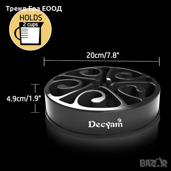 Купа за кучета с бавно хранене Decyam, изработена от нетоксичен, екологичен материал, без BPA и без фталати. Неплъзгащи се гумени крачета отдолу, спират купата с храна да се движи наоколо, няма да видите постелката или стаята си в бъркотия.