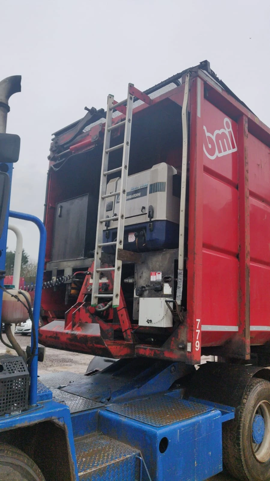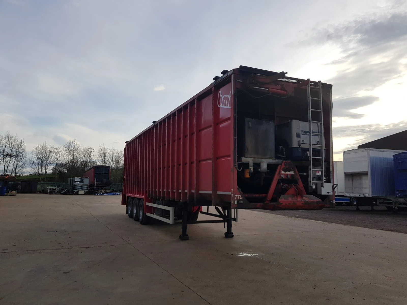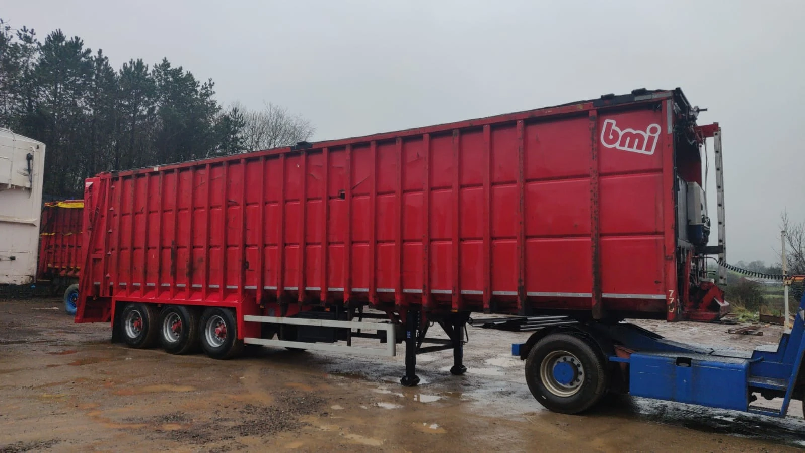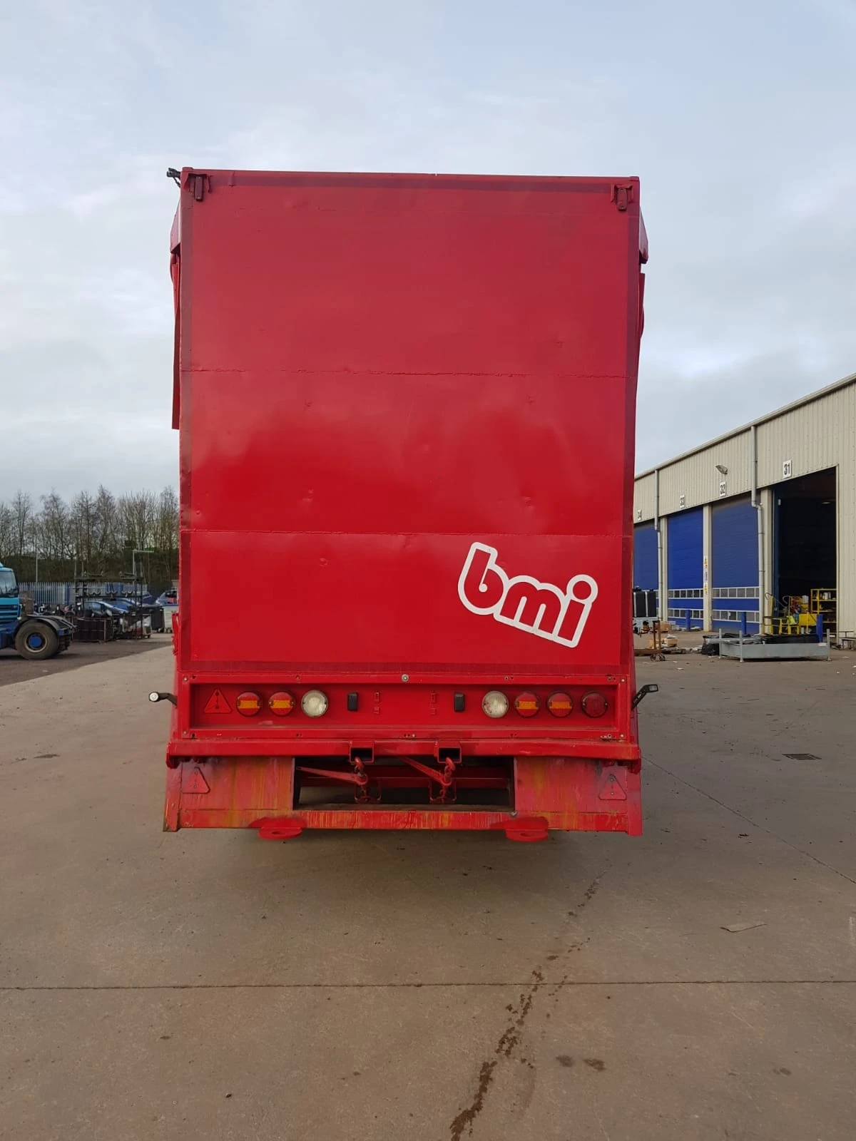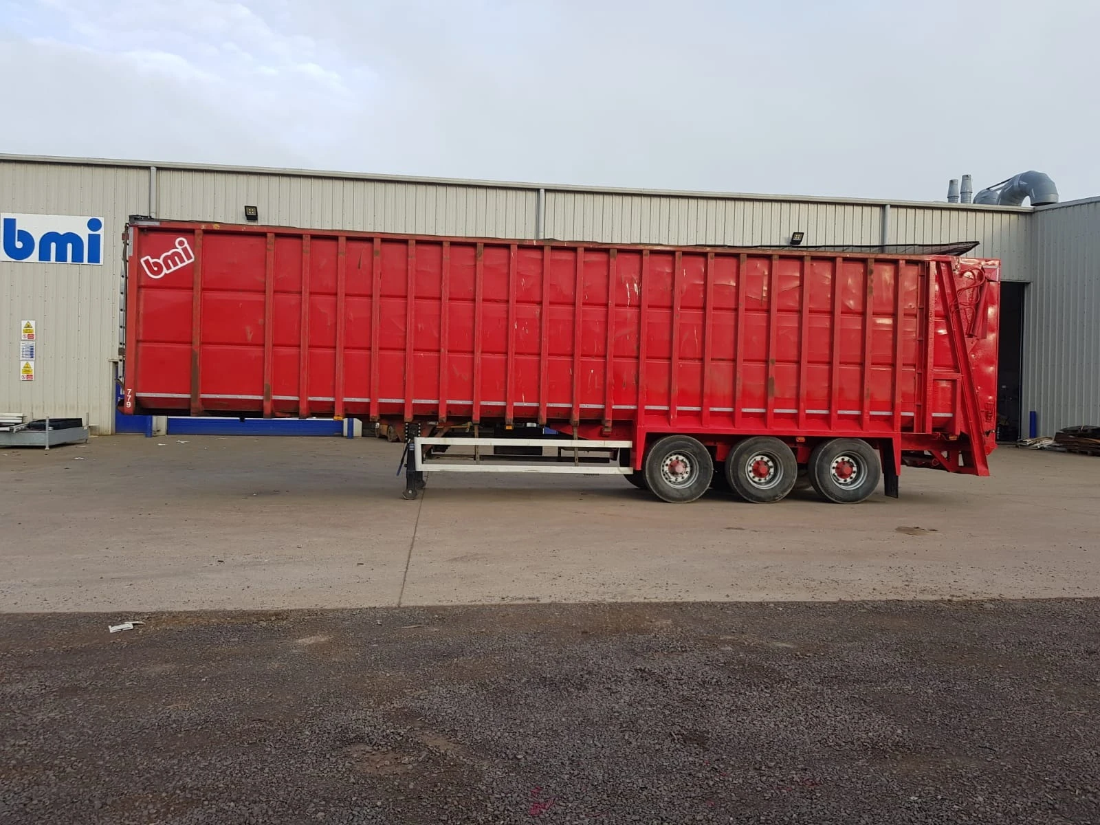 Употребявано полуремарке за транспорт на битови отпадъци - - Обем на бункера - 70 куб. м - Марка - BMI ESB100 - Модел - ESB 100 - Дата на първа регистрация на ремаркето - 19. 01. 2010г. - Оси и окачване - 3-осно с барабанни спирачки - Опорни крака - плоски, механизмът за повдигане и спускане монтиран от дясната стана - гуми - 6бр. - Пулт за управление - Да АВТОНОМЕН ДИЗЕЛОВ ДВИГАТЕЛ ЗА УПРАВЛЕНИЕ И ЗАДВИЖВАНЕ ХИДРАВЛИЧНИТЕ ФУНКЦИИ НА СМЕТОСЪБИРАЩАТА НАДСТРОЙКА. ИЗБУТВАЩА ПЛОЧА ХОРИЗОНТАЛНО ДВИЖЕЩА СЕ И ИЗБУТВАЩА ОПТАДЪКА ОТ БУНКЕРА. ГОРНО ТОВАРЕНЕ ПО ЦЯЛАТА ДЪЛЖИНА. ЗАДЕН КАПАК ПОВДИГАЩ СЕ ОТ ДВАТА ХИДРАВЛИЧНИ ЦИЛИНДРИ. ГОРНА ХИДРАВЛИЧНО ОТВАРЯЩА И ЗАТВАРЯЩА СЕ РЕШЕТКА ПРЕДПАЗВАЩА ОТ ЗАВИХРЯНЕ НА ОТПАДЪКА ПРИ ДВИЖЕНИЕ НА РЕМАРКЕТО.