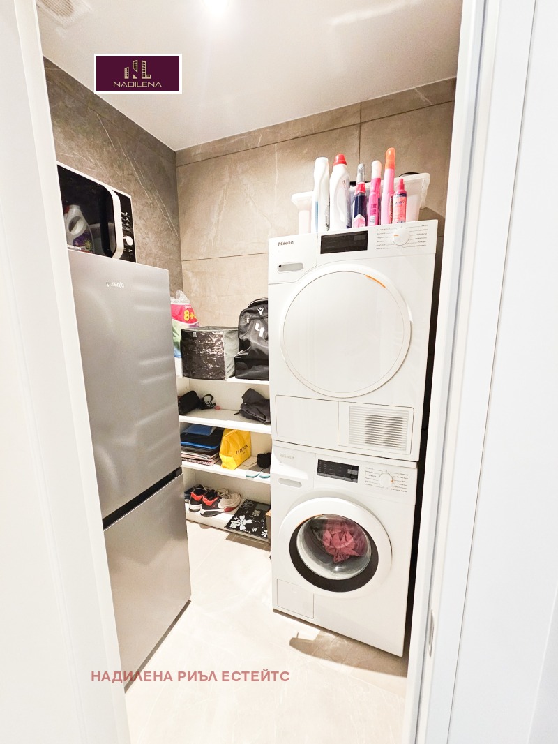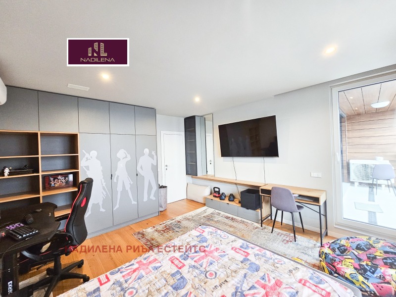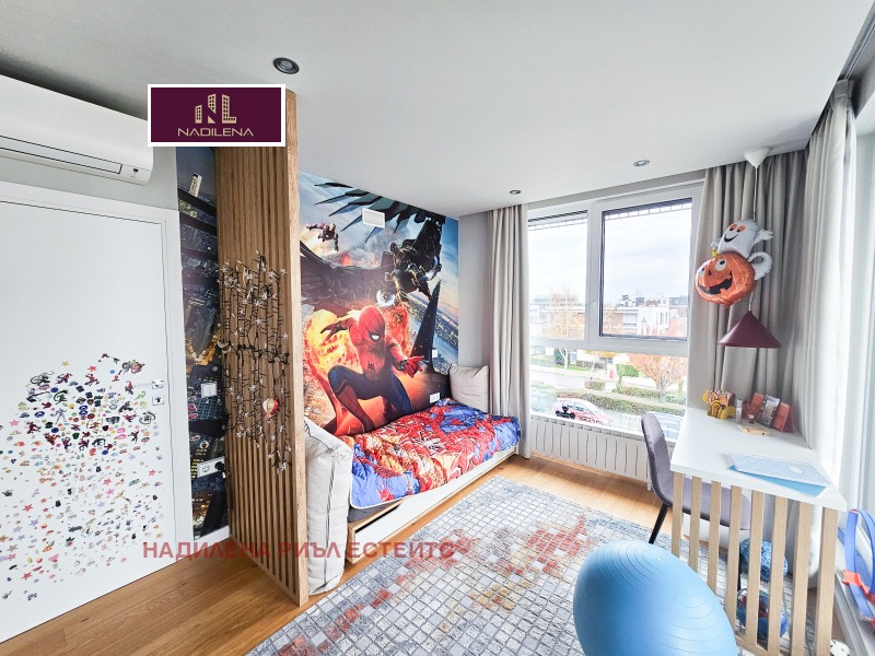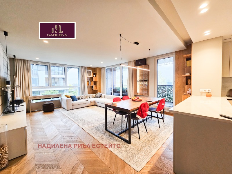 РЕЗИДЕНШЪЛ ПАРК СОФИЯ! Продажба на дизайнерски многостаен апартамент, с площ от 211м2(застроена площ от 189м2), ет.2-ри нормален/от 3, намиращ се в затворен комплекс, съчетаващ удобства и сигурна жилищна среда, както и естествена близост с природата. Предимство са многото зелени площи, спортно игрище, търговските обекти, контролиран достъп и денонощна охрана и т.н. Самата сграда е малка, с отлични общи части, няма асансьор. Жилището е със скъпи довършителни работи, поръчкови мебели, предлагащо уют и комфорт. Състои се от: антре с голям гардероб, представителен хол със светла кухня, оборудвана с маркови уреди, трапезария, излаз на веранда, родителска спалня със собствена баня с тоалетна(вана), голяма спалня със собствена баня с тоалетна, още 2 спални с общ балкон, 3-та баня с тоалетна(душ преграда), мокро за пералня/сушилня, техническо помещение(система за прочистване на въздуха), отоплението е на газ, за охлаждане са поставени климатици във всички стаи. Настилката в стаите е трислоен естествен паркет, а коридор-на гранитогрес. На част от прозорците има и външни щори. Навсякъде са хубави осветителни тела и аксесоари. Изложение-Юг/Север/Изток. Към апартамента има прилежащо мазе с площ от 10м2. Има възможност да се закупят 2 подземни паркоместа(35м2 и 25м2)- всяко по 99 999евро. Имотът е изключително подходящ и за инвестиция, с цел отдаване под наем. За допълнителна информация и огледи се обръщайте към Надя Антова-0888/788 420, 088/9999 413, Васил-0899/18 35 80, Елена-0898/60 55 33