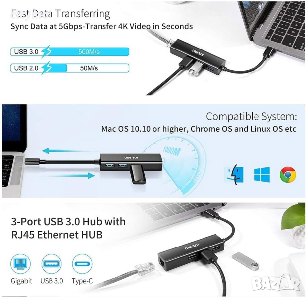 USB-C to Ethernet Adapter, CHOETECH 3 x USB C Thunderbolt to RJ45 Gigabit Ethernet LAN, снимка 1 - Мрежови адаптери - 44712417 USB-C to Ethernet Adapter, CHOETECH 3 x USB C Thunderbolt to RJ45 Gigabit Ethernet LAN, снимка 2 - Мрежови адаптери - 44712417 USB-C to Ethernet Adapter, CHOETECH 3 x USB C Thunderbolt to RJ45 Gigabit Ethernet LAN, снимка 3 - Мрежови адаптери - 44712417 USB-C to Ethernet Adapter, CHOETECH 3 x USB C Thunderbolt to RJ45 Gigabit Ethernet LAN, снимка 4 - Мрежови адаптери - 44712417 1/4