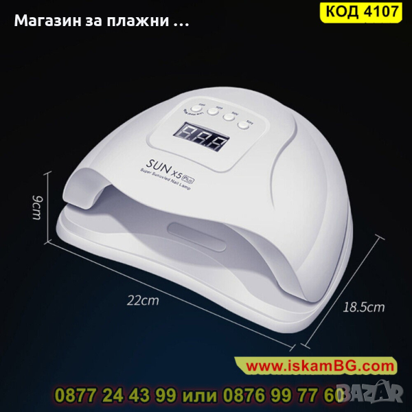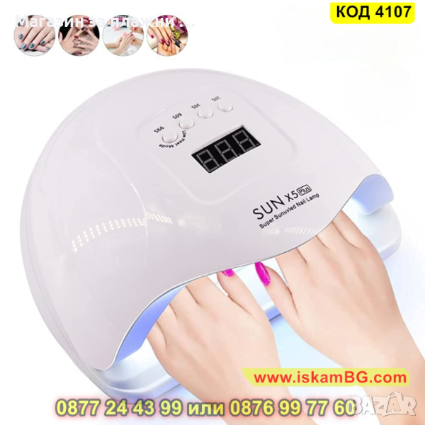 UV ЛЕД лампа за гел лак и маникюр SUN X5 PLUS - КОД 4107