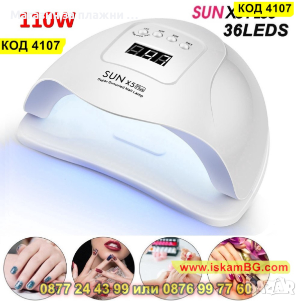 Мощна, безопасна и много ефективна UV LED лампа SUN X5 PLUS 110W.