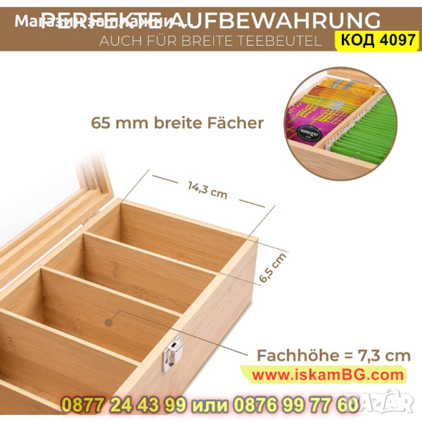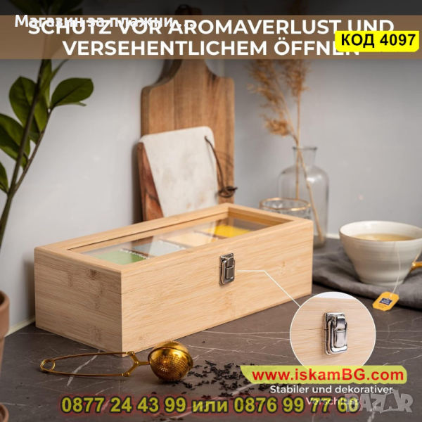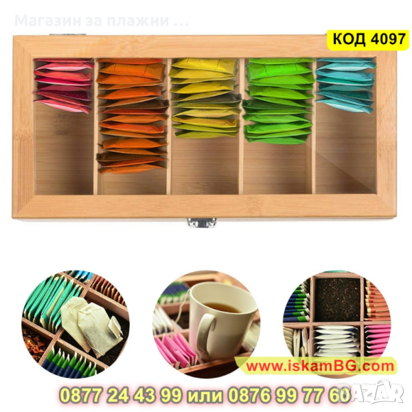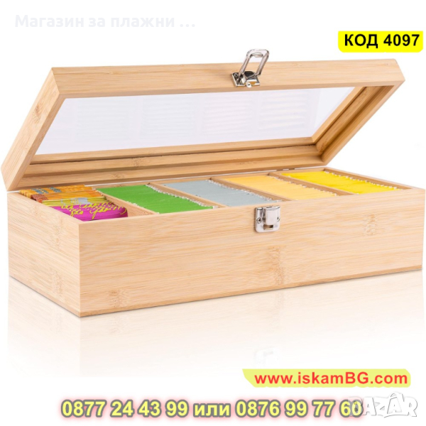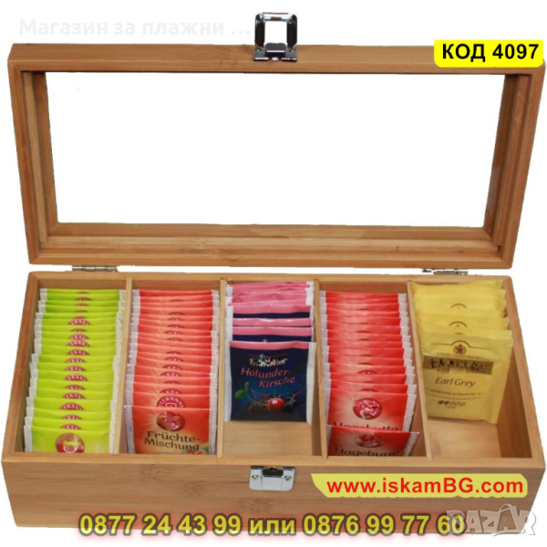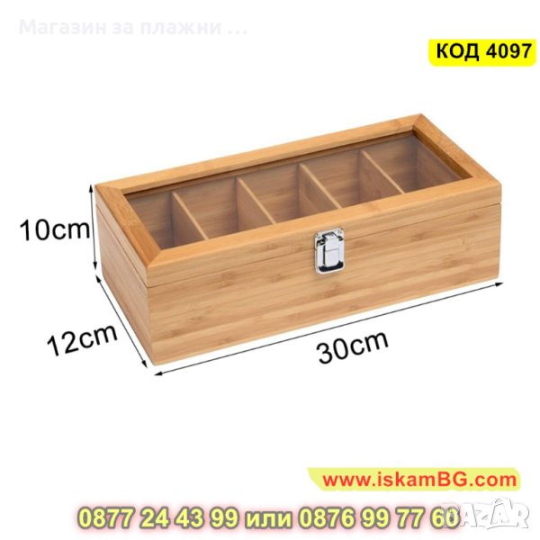 1 брой бамбукова кутия за съхранение на чай