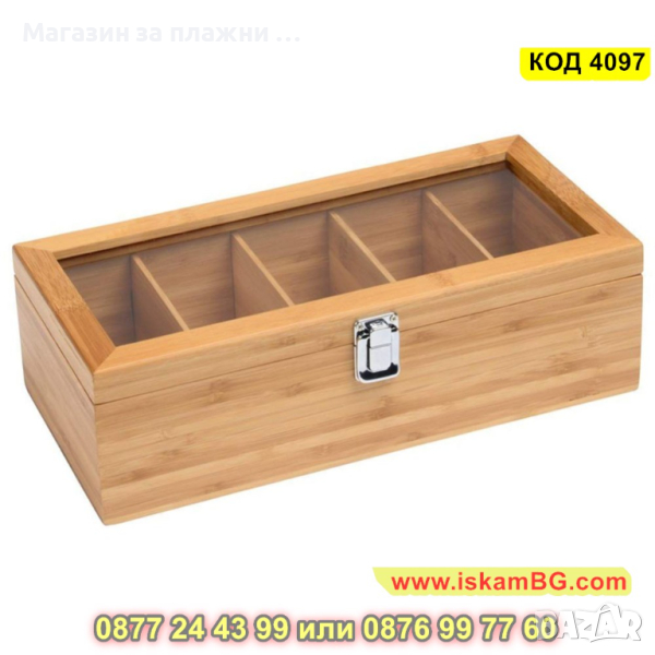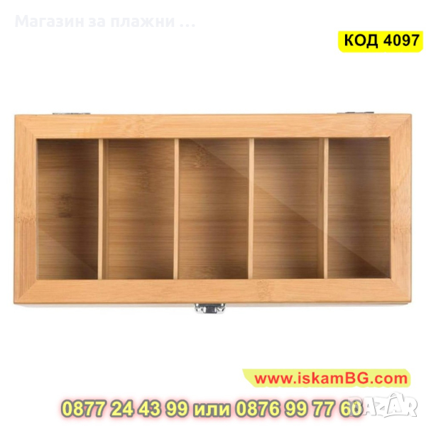 Дървена кутия за чай с 5 отделения, изработена от бамбук - КОД 4097