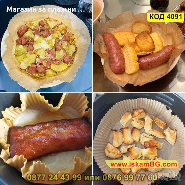 Комплектът от 100 броя хартиени подложки подходящи за Air Fryer ще улеснят приготвянето на любимите Ви храни! Този комплект е изключително практичен и рационален за всяка домакиня. Нужно е да поставите подложката на дъното на кошницата на еър фрайъра и храната върху нея. По този начин храната няма да залепне или да изгори. Също така, подложката ще запази чистотата на Вашия еър фрайър. Подобрете вкуса на приготвената храна, правейки я без излишна мазнина. Щом приключите с готвенето можете да изхвърлите подложката, без да хабите енергията си в излишно почистване! Размерите на хартиените незалепващи подложки са: диаметър 16 см и височина 4.5 см.