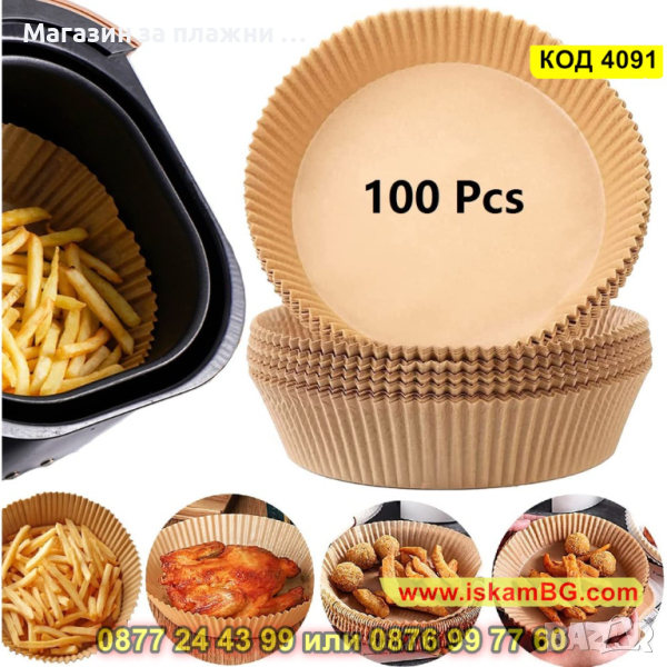 Незалепващи хартиени подложки за Air Fryer в опаковка от 100 броя, 16см диаметър - КОД 4091