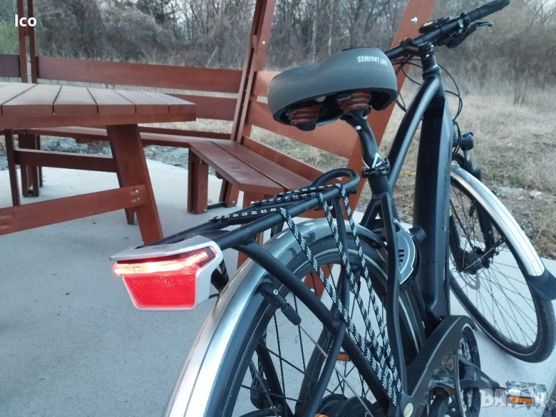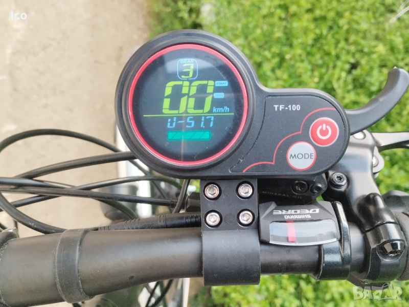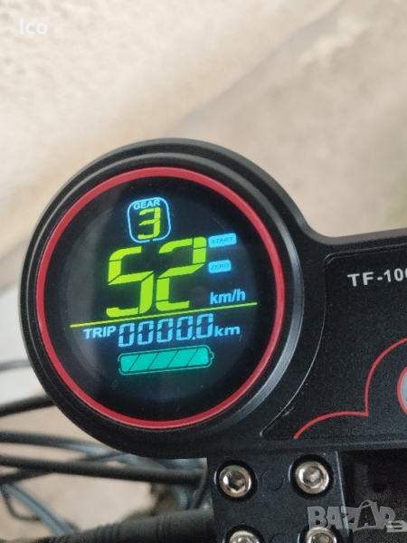 Колелото е направено без ограничител,до 45км/ч само на газ и до 53 с педалиране.Напълно безшумен мотор.Евтин бъдещ ремонт!С бързо зарядно 4ah цената е 2200лв. Още е с оригиналните си гуми и е като ново!Вградено динамо в предната главина. Цена като ново 4500долара.
