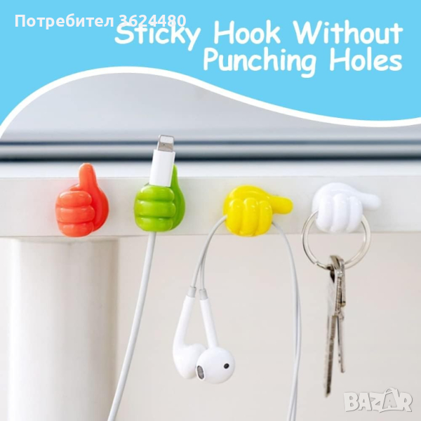 Самозалепващи държачи за кабели във формата на палец - комплект 10 броя