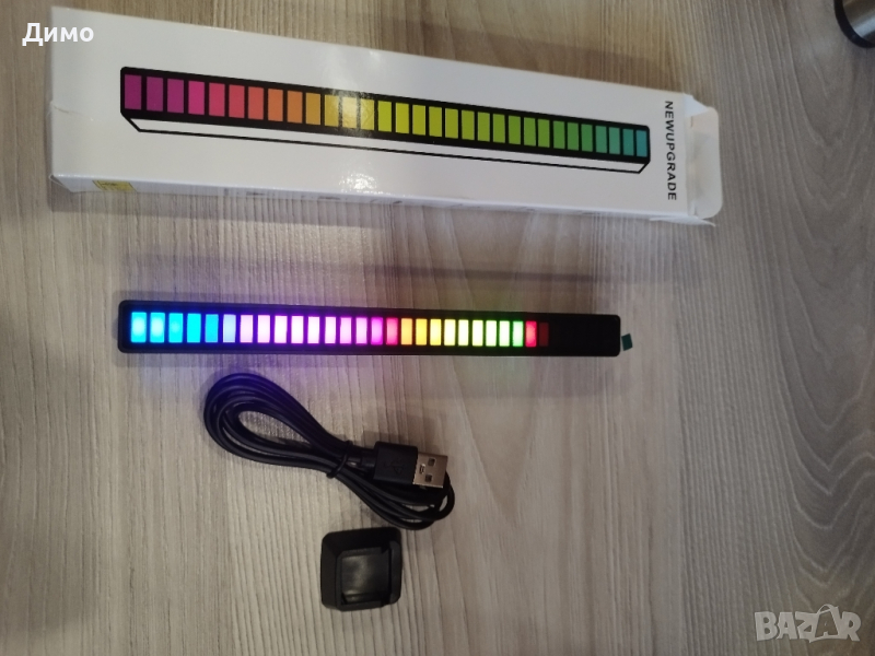 RGB светодиодна лента с гласово активирана ритъмна светлина.Модел LX9B, 32-битов индикатор за ниво на музика.Тази със стойката е 3D и е 30лв.
