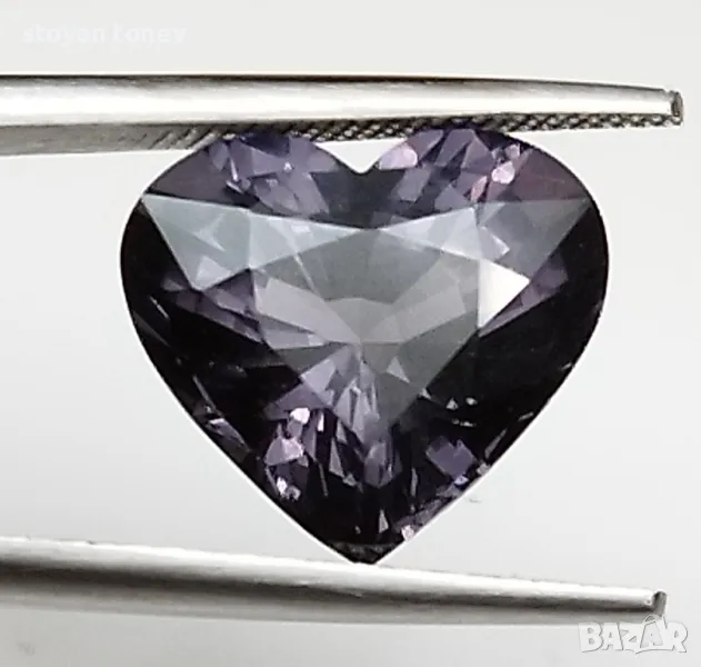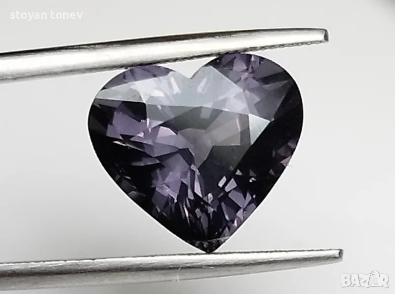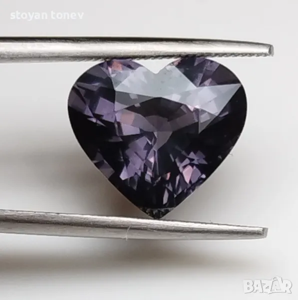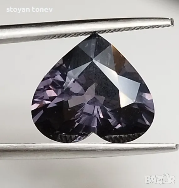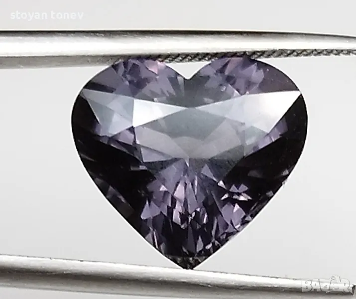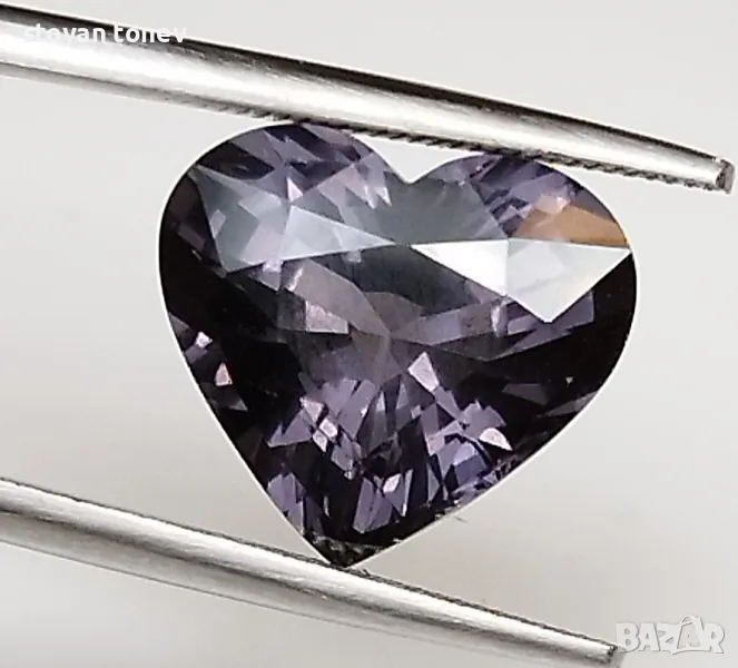 Естествен шпинел с тегло 5.02кт и произход Мианмар. Чистота VVS без никакви видими включения. Цвета е сиво лилав. Форма съце с размери: 11.54 Х 10.240 x 6.71mm.