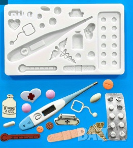 Голям медицински лекарски медицина хапчета термометър силиконов молд форма фондан шоколад гипс декор → Обява 44723741