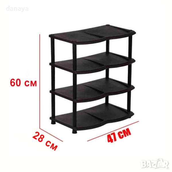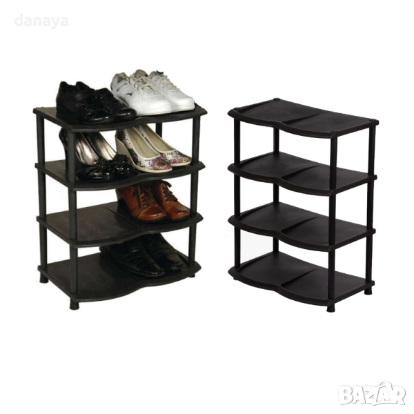 Удобен и практичен стелаж за обувки с 4 рафта. Пластмасова етажерка за обувки на 4 нива. С нея лесно ще държите обувките си подредени и винаги под ръка.