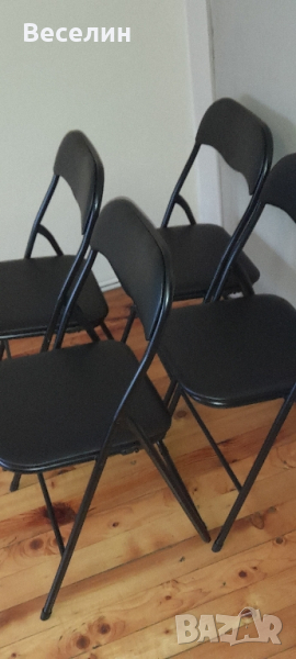 Нови сгъваеми столове материали желязо, пяна, кожа, PVC черен цвят ширина 44 см дълбочина 45 см височина 81 см .Издържа до 115 кг идеален дизайн Един брой 29 лв