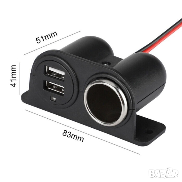 Адаптер за вграждане с 1 гнездо за запалка и 2 USB порта.