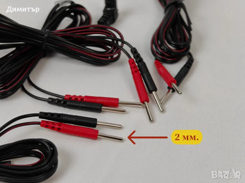Pin-a за включване към електростимулатора е 3,5мм. Извода за свързване към електрода е с дебелина 2мм.(Световен стандарт).