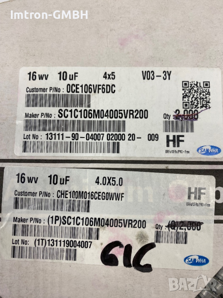 SC1C106M04005VR200 Алуминиев електролитен кондензатор, 16V, 20% +Tol, 20% Samwha Electronics → Обява 44727905