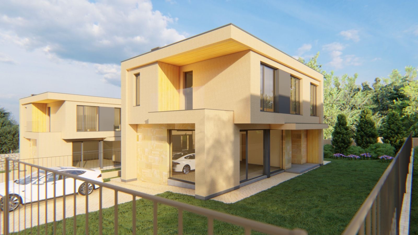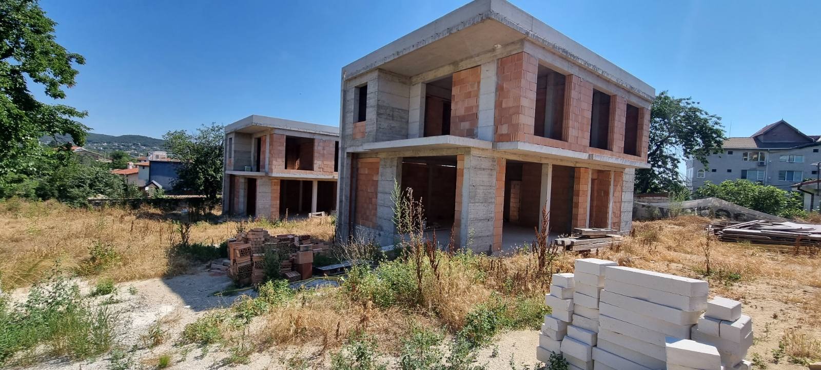 ограда с бетонна основа, предвидено е място за BBQ и 3-4 паркоместа с положени павета. В момента сградата е на А 14, издаването й ще е по БДС, а при желание от страна на новите собственици, може да бъде завършена до ключ. За строителството на къщите се използват най-висококачествените материали, а фирмата строител е доказала се в годините с безупречното си изпълнение на обектите си. За повече въпроси и огледи, моля да се обадите на посоченият телефонен номер и да цитирате кода на офертата.