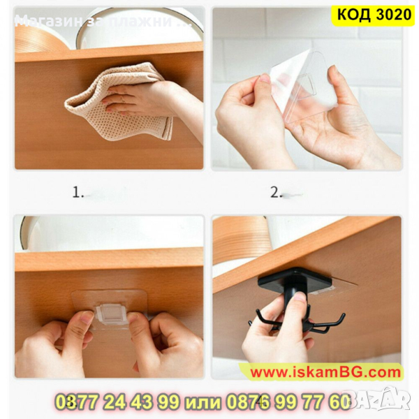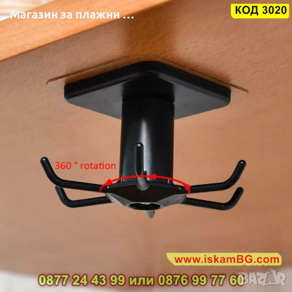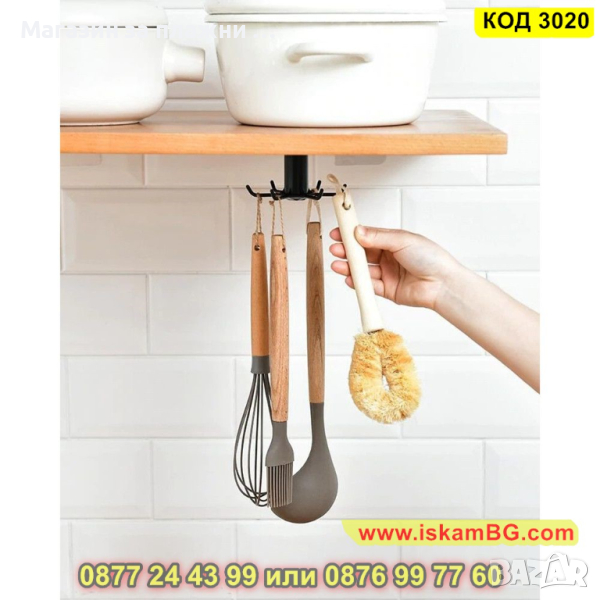 Самозалепваща закачалка за кухненски прибори, въртяща се - КОД 3020