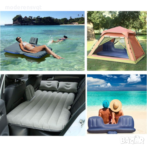 Надуваемо легло, матрак за кола с възглавници и автоматична помпа. Лесно за почистване с мека повърхност, много здраво и водонепромукаемо, издръжливо на износване, бързо и лесно за надуване с включената в комплекта помпа. Заема много малко място в багажника на колата в спаднало положение. Перфектно за удобна почивка на задната седалка на колата след дълго пътуване, нощно парти, фестивали и др. Този гъвкав и практичен, надуваем матрак също може да се използва извън колата, за излежаване в градината и тн.