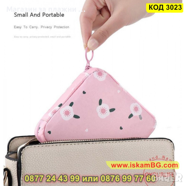 Вместимост - до 10 бр. дамски превръзки, дребни предмети и монети