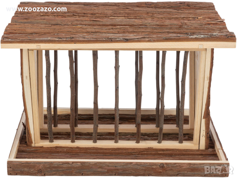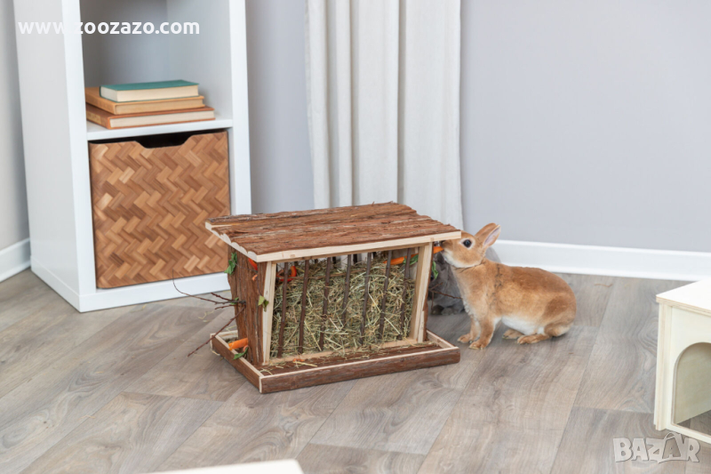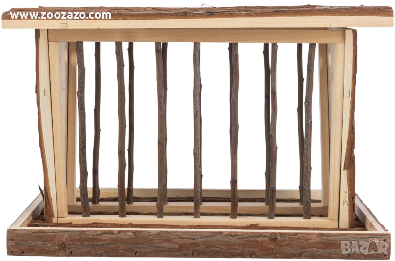 с дъното, прави поддържането на околната среда чиста покрива, както и допълнителни под защита на фуражи и сено от влага допълнителни отвори за клони и зеленчуци с място на покрива за наблюдение с капак, това означава, че няма риск от нараняване шарнирнирни покриви кора от дърво