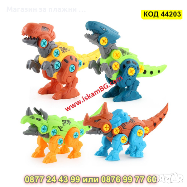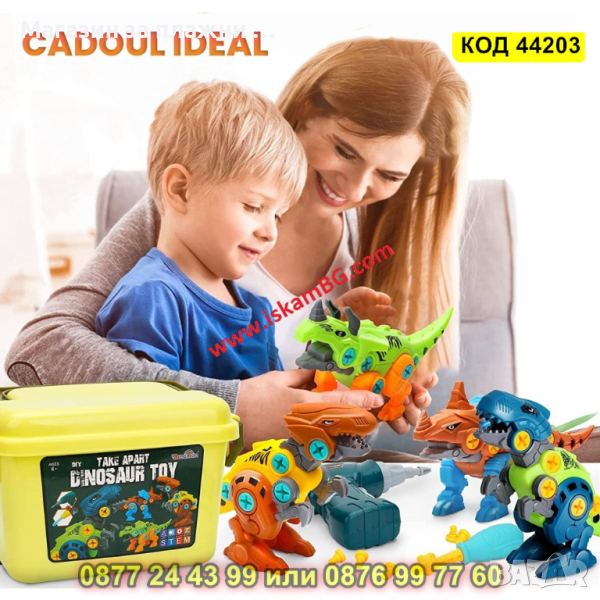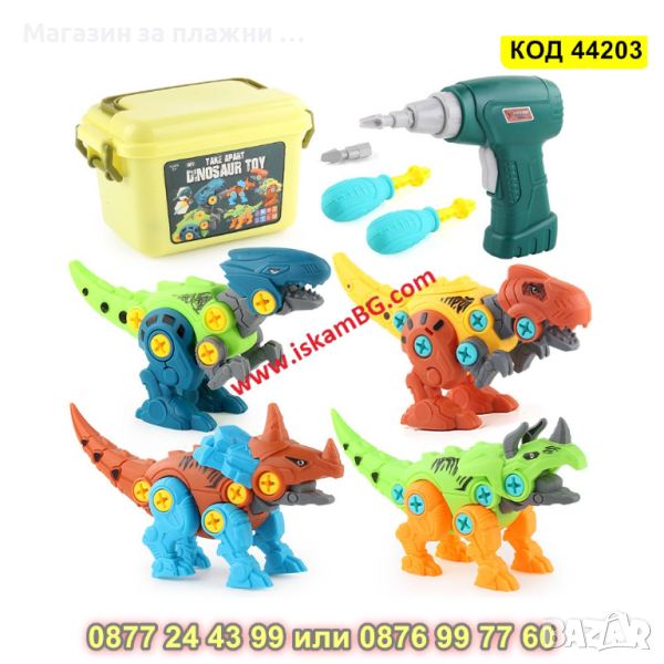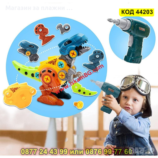 Детски комплект за сглобяване на динозаври с кутия за съхранение, електрически винтоверт - КОД 44203