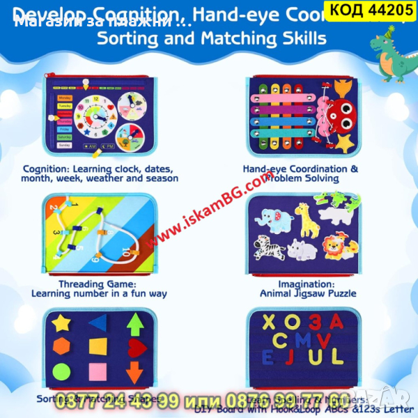Бизиборд чанта Монтесори с 8 страници - КОД 44205 → Обява 44734535