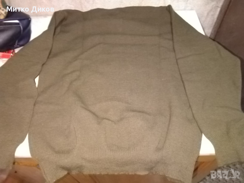 Военен ловен пуловер 50% вълна 50% пан нов Шина Андреева Баните размер М-горе додолу 70см и подмишници-54см-изпращам по еконт-по спиди