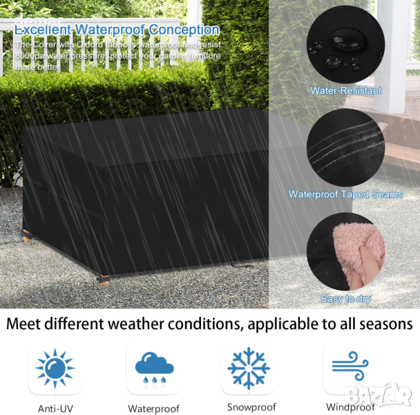VANSHEIM Водоустойчив калъф за градински мебели, Анти-UV, 160x100x75cm, 170x110x75cm