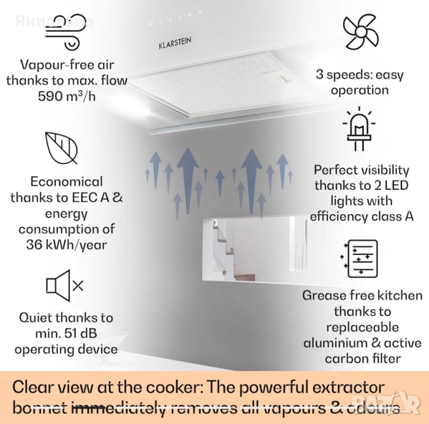 Чист лукс: абсорбаторьт за монтаж на таван над повърхностите за готвене