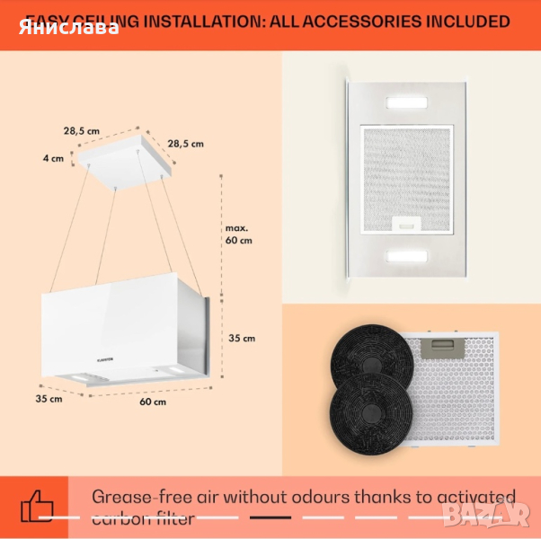 Чист въздух: миещ се алуминиев маслен филтьр и филтьр с активен въглен против миризми