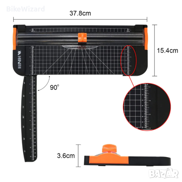 Резачка за хартия Flintronic Резачка за хартия A4 Преносима резачка за хартия с водач на линията за рязане и странична линийка, машина за рязане Резачка за хартия за дома и офиса черна, 38 см